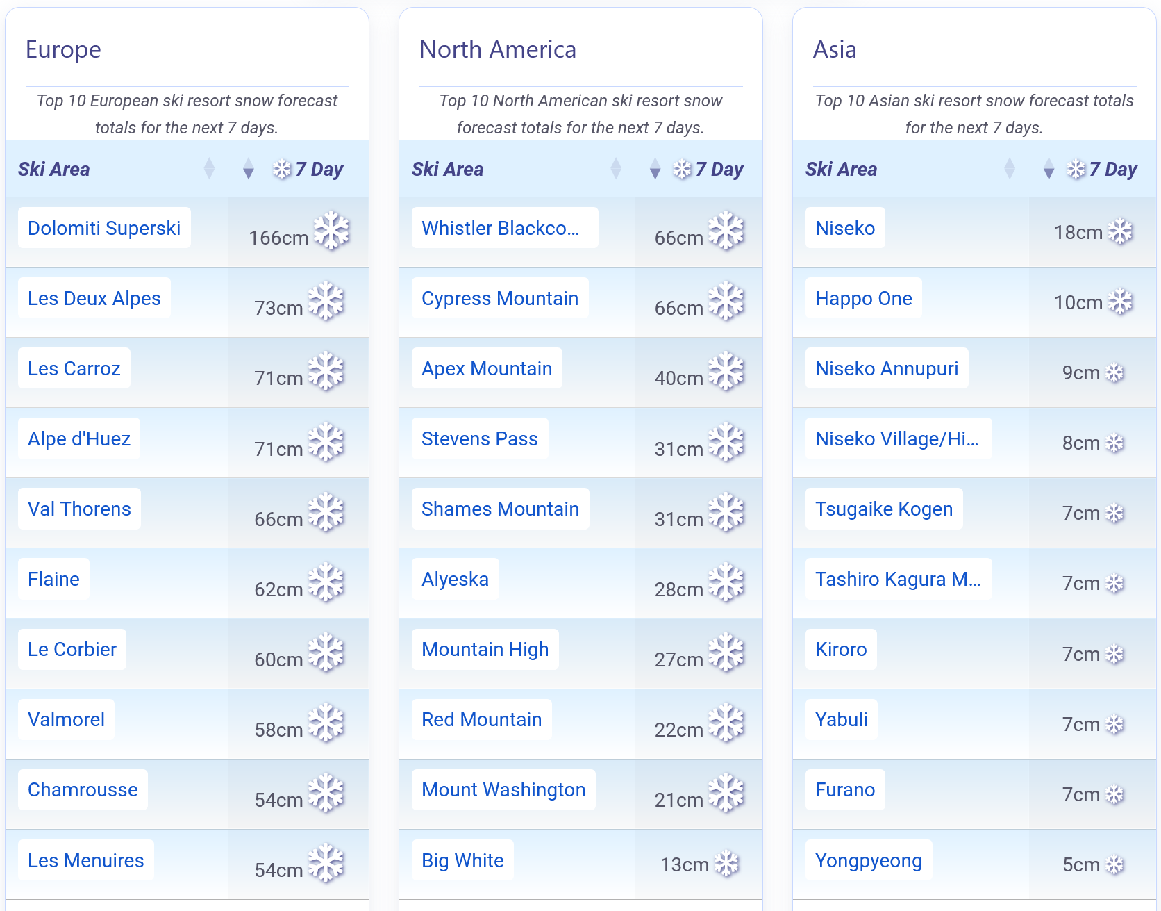 Further afield, conditions are also looking promising in Japan, with the Hakuba Valley reporting a 40 cm/16 inches fall on Thursday morning.