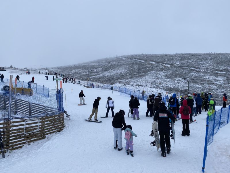 It currently offers a dry slope (probably snow covered now) for skiers, machine made snow for sledgers and its access chair for tourers to use to get up to altitude snow areas off piste quickly.