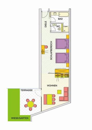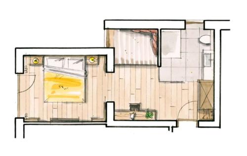 This apartment is situated on the ground floor and faces the garden. It features 2 bedrooms, a living room with an integrated kitchen, a bathroom with a shower and a bathtub, and a separate toilet. The apartment comes with furniture made of larch wood and features amenities like a dishwasher, a TV, internet, a safety deposit box, a wardrobe and a bathroom with a hairdryer. The parking garage and the hotel's bar and lounge can easily be accessed via a lift. Please note that extra beds are not available in this room type. Please note that the apartment is not being cleaned during your stay.