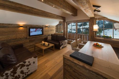 All rooms have a balcony or a rooftop terrace with great mountains views. The luxurious chalets have a private spa area including a sauna, an outdoor hot tub, a rain shower and a relaxation area.