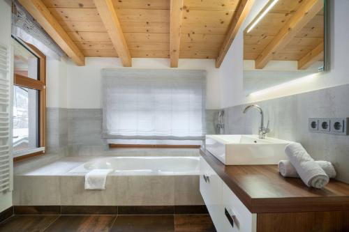 Guests will have a special experience as this apartment provides a fireplace. Featuring a private entrance, this spacious apartment also is comprised of 2 separate bedrooms and 2 bathrooms with a bath and a shower. In the fully equipped kitchen, guests will find a stovetop, a refrigerator, a dishwasher and kitchenware. Boasting a balcony with mountain views, this apartment also offers a tea and coffee maker and a TV. The unit offers 3 beds.