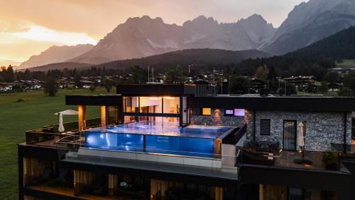 Kaiserjuwel 4 Sterne Superior is in the Austrian ski resort of Going am Wilden Kaiser and has Saalbach Hinterglemm, Söll, Kitzbühel and Westendorf and other ski areas within reach for a days skiing.
