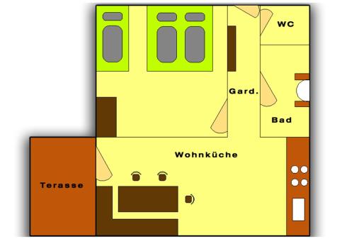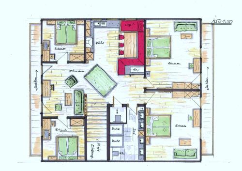 Equipped with furnishings made of old wood and Swiss stone pine wood, this spacious apartment features 2 double rooms, 2 quadruple rooms and a living room with a sofa bed, each with satellite TV and a balcony. The fully equipped kitchen includes a microwave, a dishwasher and a toaster, and comes with a large dining area and a cosy tiled stove. The bathroom comes with shower and there are 2 toilets in the apartment.