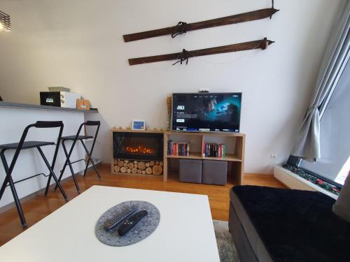 This apartment offers a fireplace. Featuring a private entrance, this apartment comprises 1 living room, 1 separate bedroom and 1 bathroom with a shower and a hairdryer. The well-fitted kitchen features a refrigerator, a dishwasher, kitchenware and an oven. The apartment provides a flat-screen TV with streaming services, a tea and coffee maker, a seating area, a dining area as well as mountain views. The unit offers 4 beds.