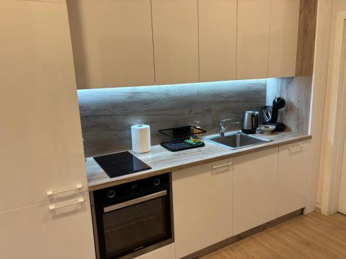 The apartment is located on the ground floor and is equipped with 1 bedroom, a flat-screen TV with streaming services and a fully equipped kitchen that provides guests with a dishwasher, an oven, a washing machine, a microwave and a toaster. Towels and bed linen are provided in the apartment. For added privacy, the accommodation has a private entrance and soundproofing.