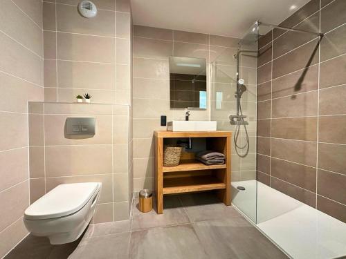 The spacious holiday home with a terrace and mountain views features 2 bedrooms, a living room, a TV, an equipped kitchen with a dishwasher and an oven, and 2 bathrooms with a bath. Towels and bed linen are featured in the holiday home.