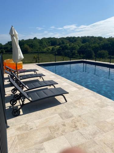 Guests will have a special experience as the holiday home features a pool with a view. Featuring a private entrance, this holiday home also consists of 1 bedroom, a seating area and 1 bathroom with a shower and a hairdryer. Guests will find a stovetop, a refrigerator, kitchenware and an oven in the well-equipped kitchen. The holiday home also offers a barbecue. The holiday home provides a flat-screen TV, soundproof walls, a coffee machine, a dining area as well as garden views. The unit offers 1 bed.