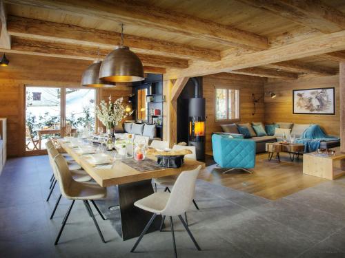 The spacious chalet has 5 bedrooms, 5 bathrooms, bed linen, towels, a TV with satellite channels, a dining area, a fully equipped kitchen, and a terrace with mountain views. Guests can take in the ambience of the surroundings from an outdoor dining area or keep themselves warm by the fireplace on colder days. For added privacy, the accommodation features a private entrance.