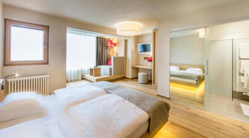 All rooms come with a satellite TV and they have hardwood furnishings. Some rooms come with a balcony or terrace with views of the Dolomites. The rooms are located 70 metres from the main building.