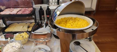 A buffet breakfast is served every morning in a hotel restaurant specialising in traditional Polish cooking.
