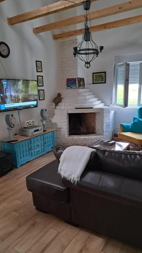 The villa is equipped with 3 bedrooms, 1 bathroom, bed linen, towels, a flat-screen TV with streaming services, a dining area, a fully equipped kitchen, and a terrace with mountain views. Guests can take in the ambience of the surroundings from an outdoor dining area or keep themselves warm by the fireplace on colder days.