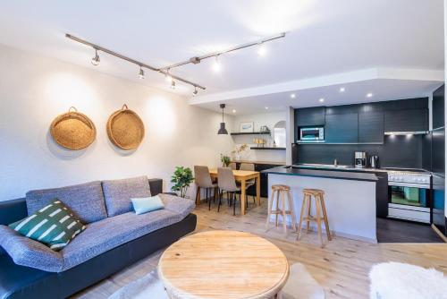 The apartment with a balcony and mountain views has 1 bedroom, a living room, a TV, an equipped kitchen with a dishwasher and an oven, and 1 bathroom with a bath. Towels and bed linen are available in the apartment. The accommodation offers a fireplace.