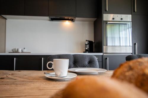 The apartment provides guests with a terrace, mountain views, a seating area, satellite flat-screen TV, a fully equipped kitchen with a dishwasher and an oven, and a private bathroom with bath. Some units include a balcony and/or a patio with garden views and an outdoor dining area. At the apartment complex, all units are fitted with bed linen and towels.