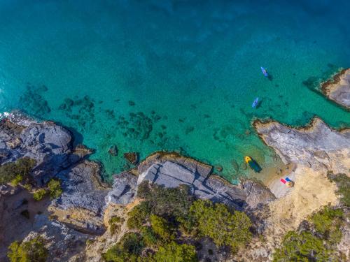 The villa provides guests with a terrace, sea views, a seating area, satellite flat-screen TV, a fully equipped kitchen with a dishwasher and an oven, and a private bathroom with walk-in shower and bathrobes. A microwave, a toaster and fridge are also featured, as well as a coffee machine and a kettle. At the villa complex, the units are fitted with bed linen and towels.