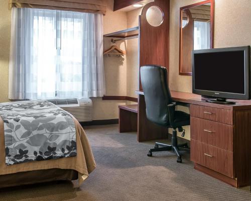 A cable TV and coffee maker are featured in each room at the Sleep Inn Flat Rock. A microwave, refrigerator, and iron are also included.