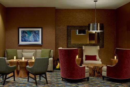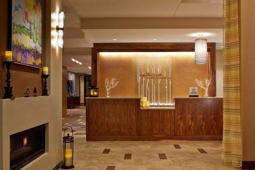 BLVD Kitchen & Bar at the Hilton Garden Inn serves American cuisine. Cocktails can be enjoyed on the patio and room service is available. In addition, the 24-hour market has snacks, drinks and travel items.