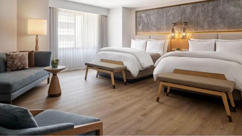 This room features a sitting area with a sofa bed, flat-screen TV with cable channels, coffee and tea maker, free toiletries and a work desk. Guests can enjoy a relaxation with the soundproof windows and pillowtop mattress. It offers access to the club lounge, which features a rotation of food throughout the day, including a continental breakfast, a midday snack and hors d'oeuvres. Free non-alcoholic beverages are also provided.