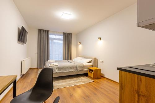 This apartment comprises 1 living room, 1 separate bedroom and 1 bathroom with a shower and a hairdryer. Meals can be prepared in the kitchenette, which comes with a stovetop, a refrigerator, kitchenware and a tea and coffee maker. Featuring a balcony with mountain views, this apartment also provides heating and a flat-screen TV. The unit offers 1 bed and 1 futon.